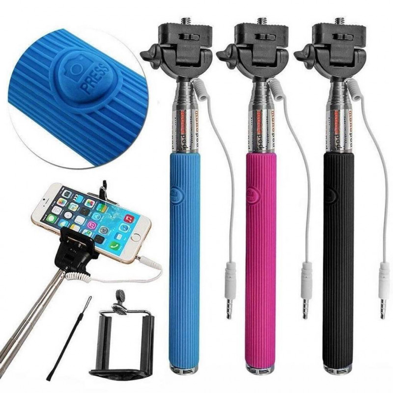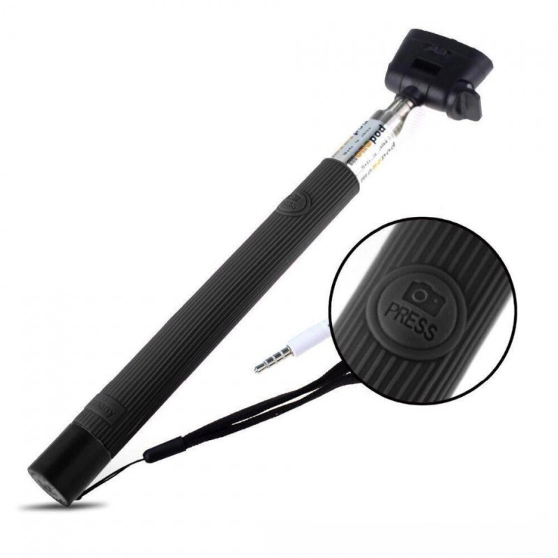 Его основным преимуществом перед моноподом bluetooth является тот факт, что его не нужно заряжать! Просто бросил в сумку и пошел! Для того, чтобы его начать использовать необходимо подсоединить провод в разъем наушников, после чего нажимайте кнопку на ручке монопода и делайте снимки!