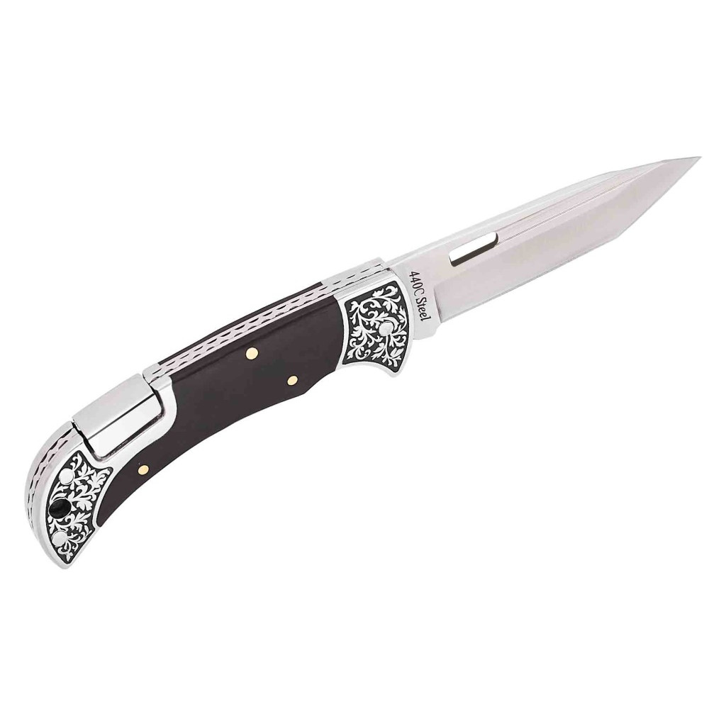 Клинок изготовлен из нержавеющей стали марки 440С. Эта сталь прочна и отлично сопротивляется коррозии.