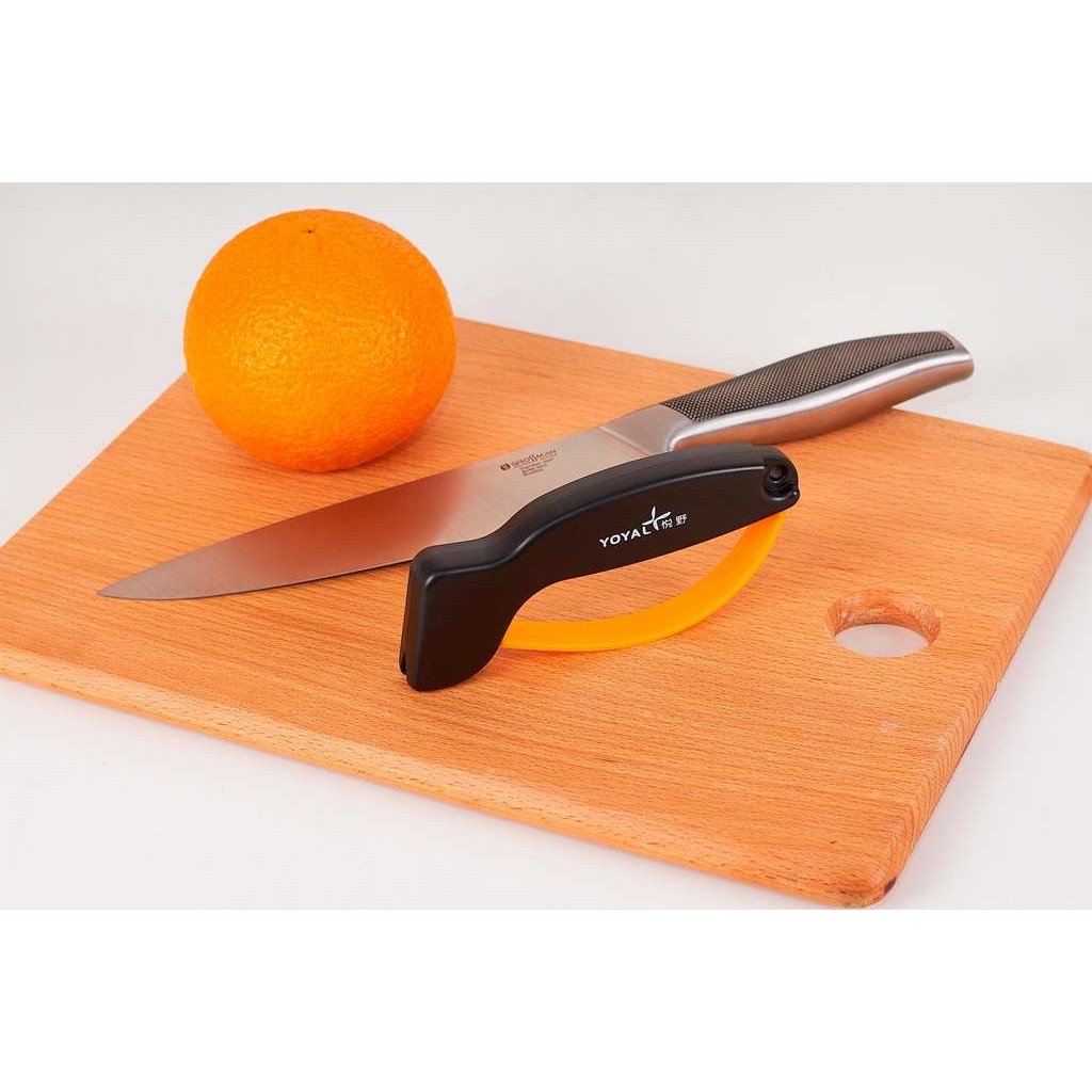 Точилка 0601 T – эффективное и безопасное приспособление для поддержания ножей и других хозяйственно-бытовых инструментов в рабочем состоянии. Главная ее особенность – в повышенной безопасности. Для этого она снабжена специальным предохранителем для пальцев. Он имеет вид пластиковой дуги, похожей на закрытую гарду, которая и надежно защищает вашу руку во время заточки.