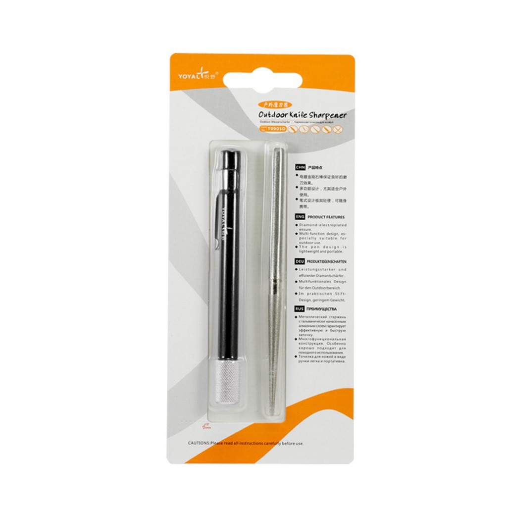 0905 D – це невелика точила кишенькового типу, зроблена у вигляді мусату. Складається ця точилка-мусат зі стрижня з алмазним напиленням і корпусу у вигляді ручки, який відіграє роль захисного футляра для стрижня, коли він складний, а також служить його рукояттю під час роботи.